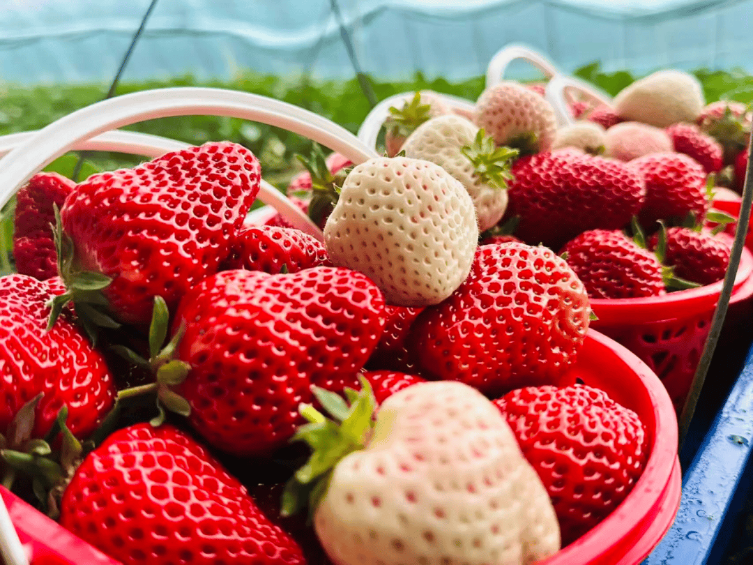 张家楼的各大农场里,草莓已挂满枝头,红如玛瑙,白如凝脂,咬一口,汁水四溅,果香浓郁,满满的原生态风味~正等着你来采摘。